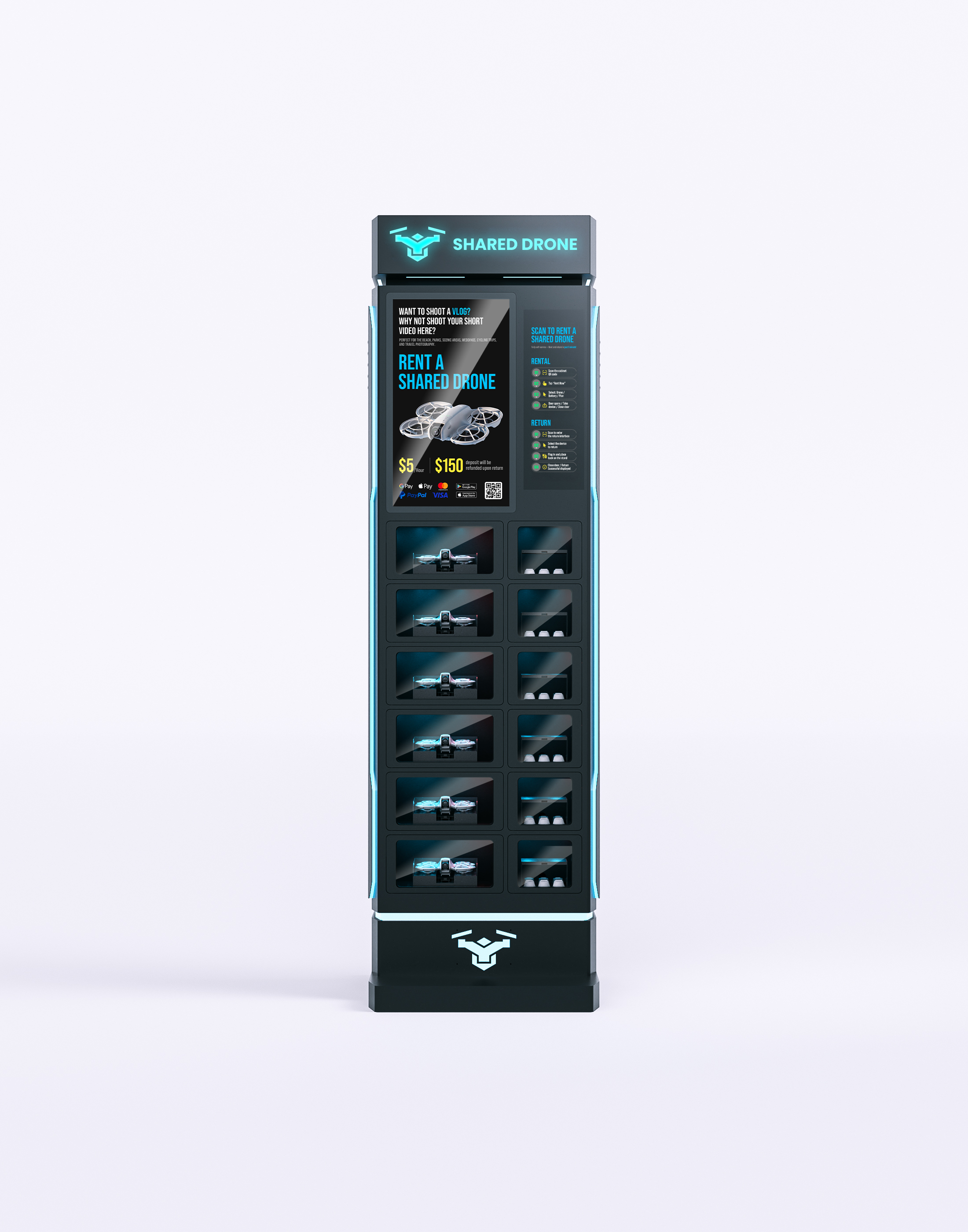 48-Slot Power Bank Kiosk (Touch Screen + POS)