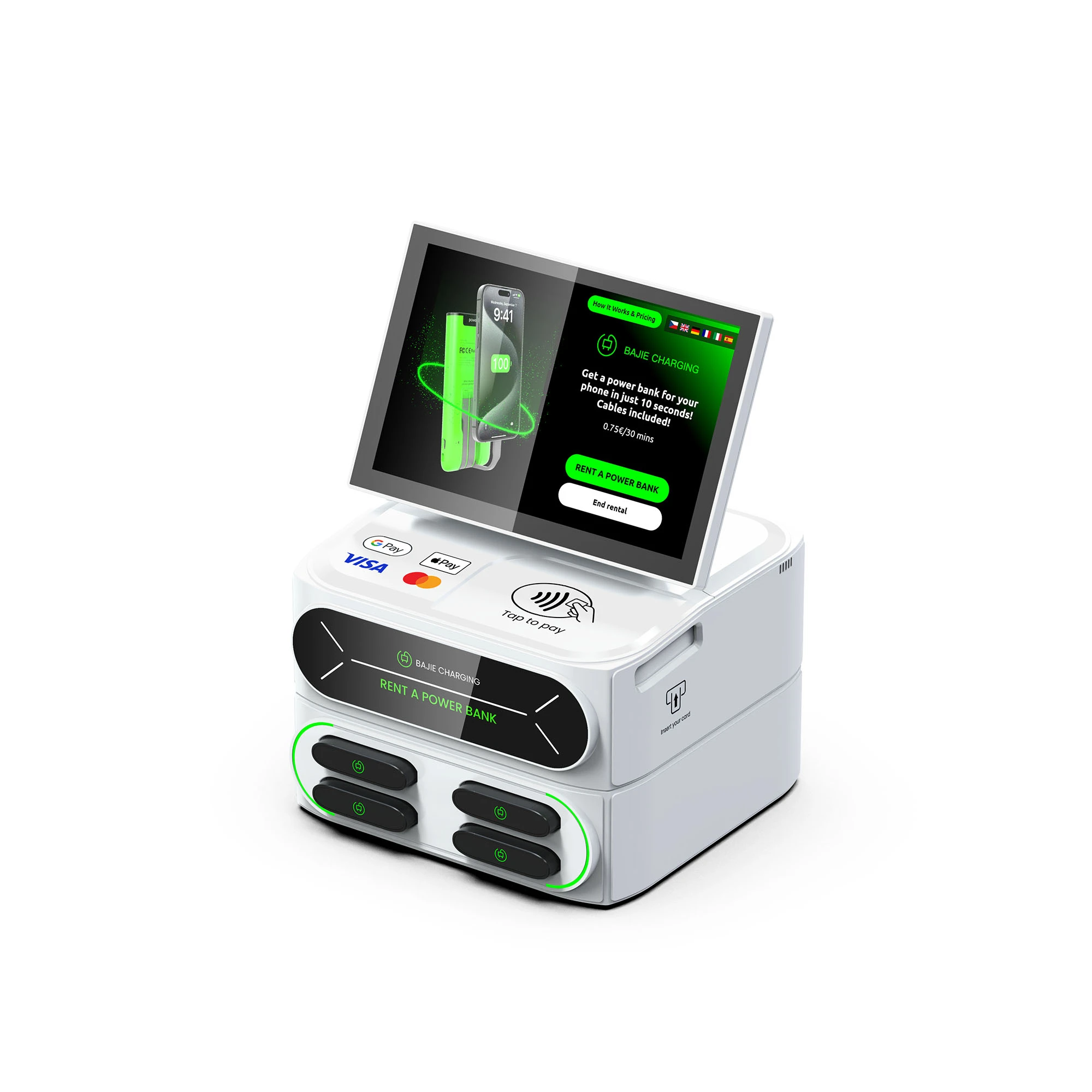 charging station. No phone needed—rent easily and quickly.